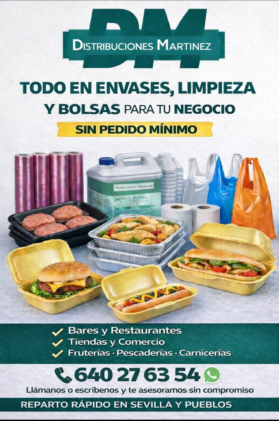 En Distribuciones Martínez somos una empresa especializada en la distribución de envases para alimentación, productos de limpieza e higiene profesional. Trabajamos con bares, restaurantes, comercios y negocios que necesitan un proveedor de confianza, con reparto rápido, atención cercana y precios profesionales.